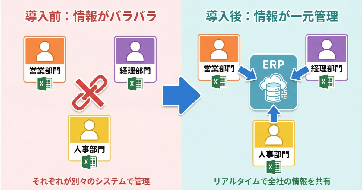 これが、ERPがもたらす「情報の一元管理」の力です。